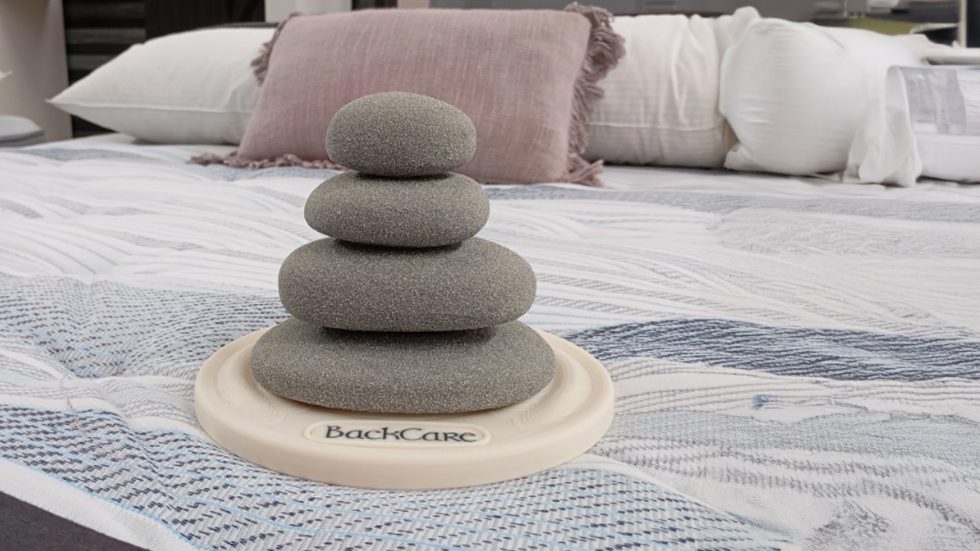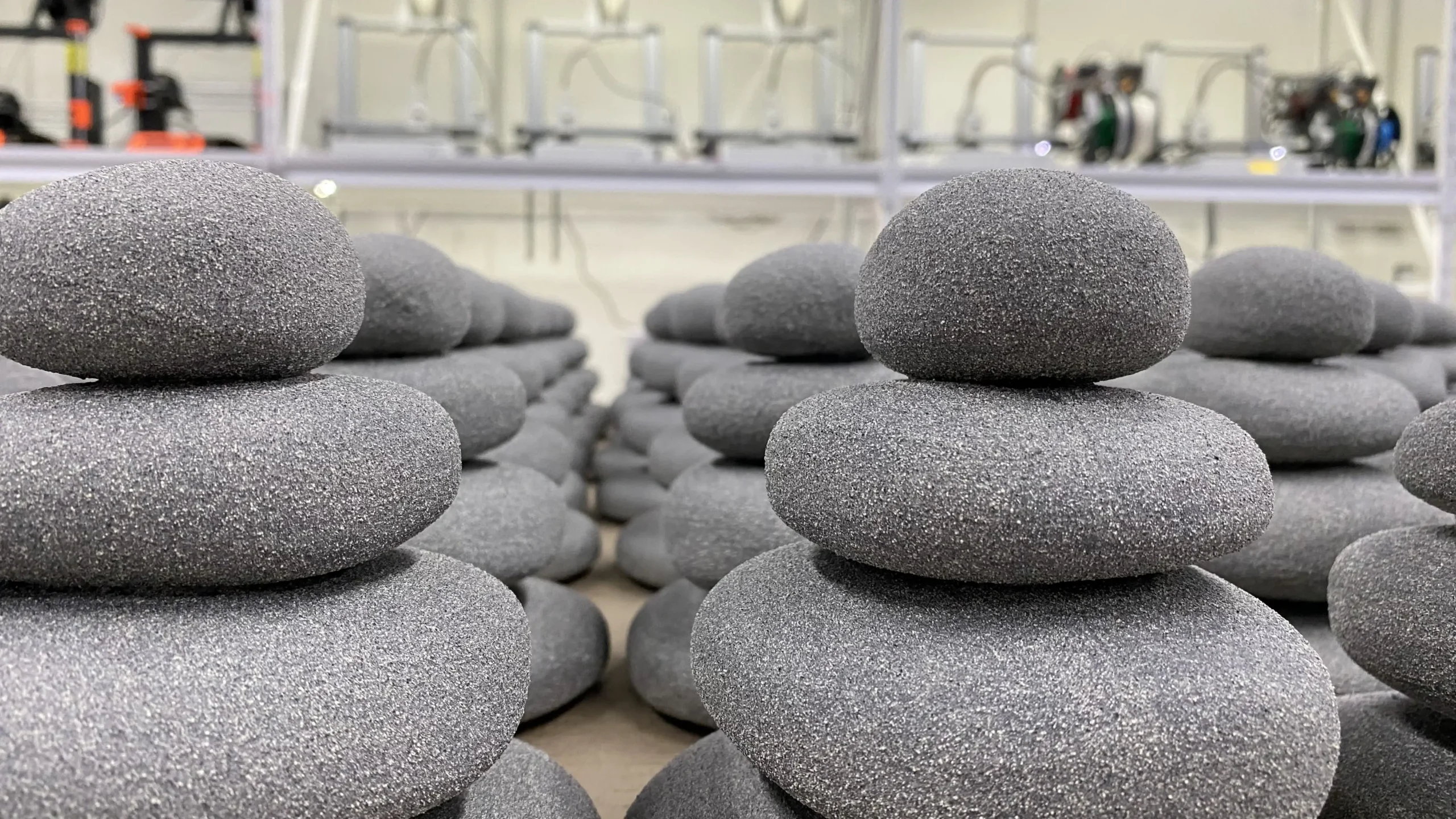 Se pusieron en contacto con Sólidos para crear un objeto de referencia que muestre armonía, paz y estabilidad. Pensaron que las piedras apiladas tienen un significado simbólico justo que representa el equilibrio que buscaban.